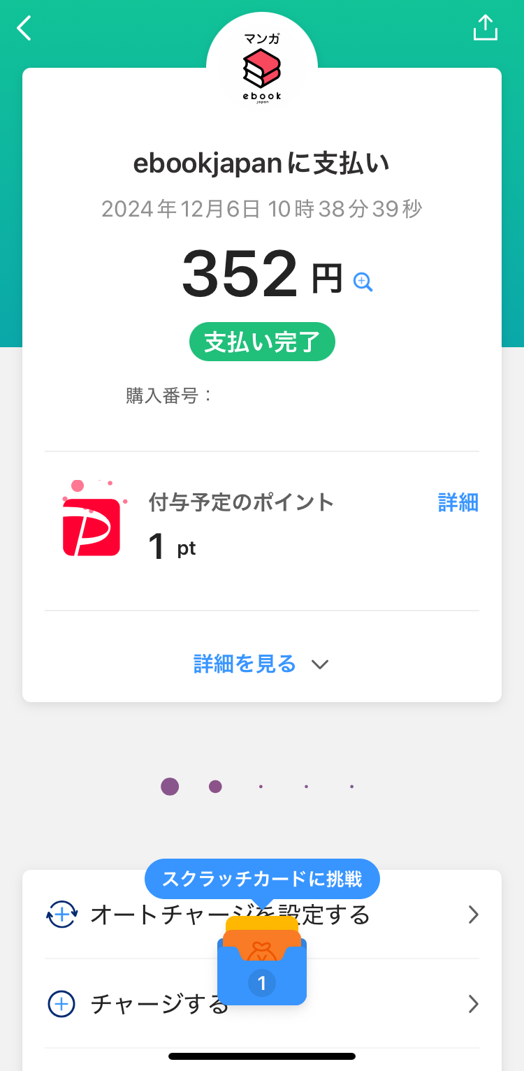 とりあえず132円のマンガを購入したらこんだけポイントもらえるよー