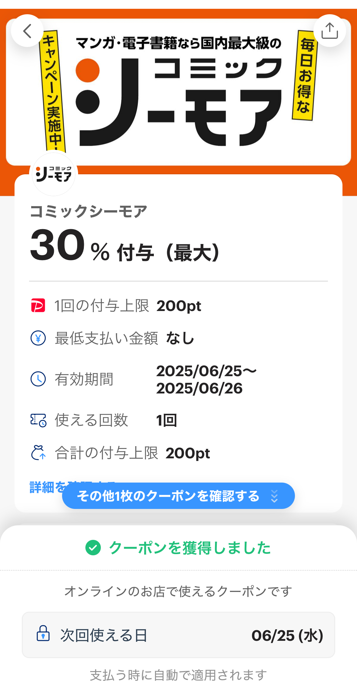 PayPayでシーモアクーポン再び!!!